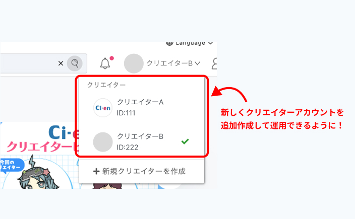 今後は今のアカウントにログインしたまま、別のクリエイターアカウントを「追加」して運用することが可能です。