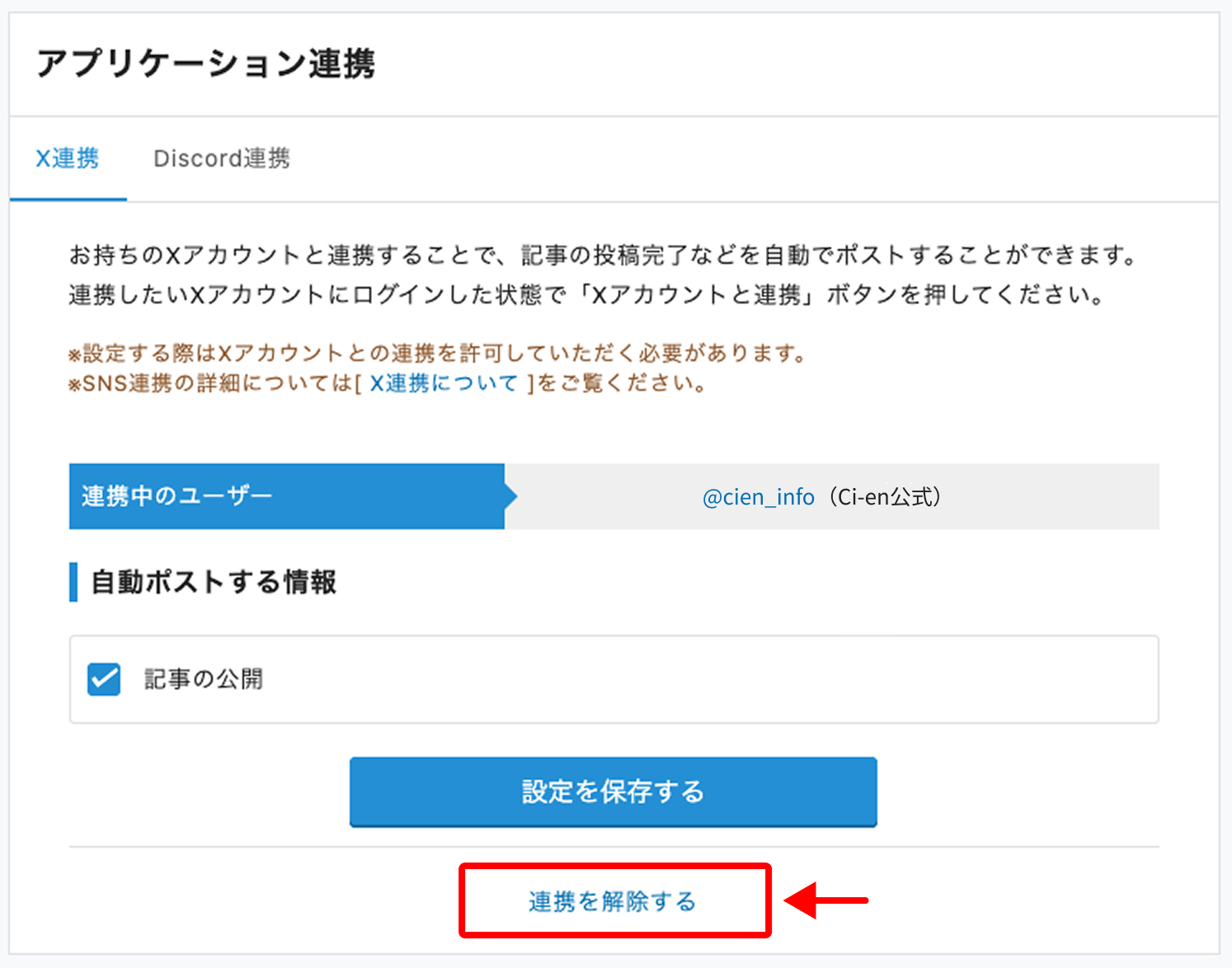 ※連携を行っていただくと、以降、記事を投稿した際などに自動ポストされるようになります。