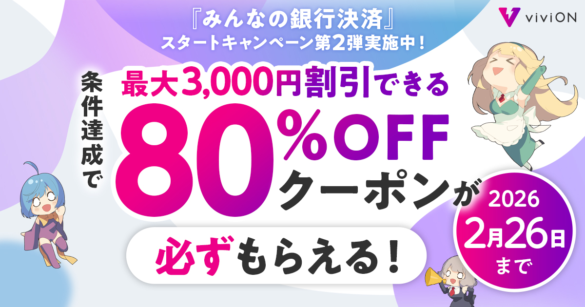 ※キャンペーン内容の詳細は、[ viviON公式 みんなの銀行決済特設ページ ] をご確認ください。